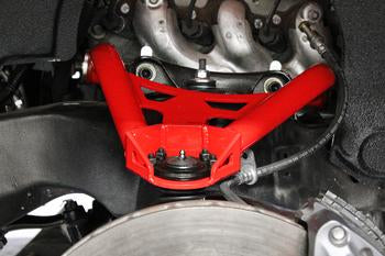BMR Lower control arms, DOM, on-car adj, poly/rod end combo Red