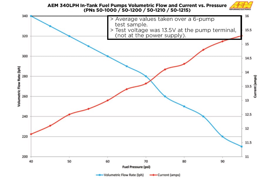 AEM's 340LPH E85-Compatible High Flow In-Tank Fuel Pumps feature robust internal construction that is designed to withstand the low lubricity characteristics of ethanol and methanol fuels, and are tested to work with ethanol fuels up to E100, methanol fuels up to M100 and all types of gasoline. The AEM 340LPH E85-Compatible High Flow In-Tank Fuel Pump is designed for in-tank mounting on high performance naturally aspirated and forced induction vehicles. It features a compact 39mm diameter that fits most applications and an offset inlet design that eases installation. The 340LPH E85-Compatible High Flow In-Tank fuel pump includes a wiring harness, pre filter, internal fuel hose, clamps, end cap and rubber buffer sleeve. Every AEM 340LPH E85-Compatible Fuel Pump is tested to flow 340 lph at 40 PSI before it is packaged for sale.
