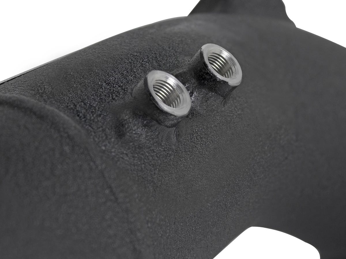Constructed of 2-1/2" to 3" mandrel-bent aluminum tubing then powder-coated wrinkle-black for heat and corrosion resistance. The smooth transition mandrel bends decrease turbulence which increases horsepower and torque while lowering EGT's. The high-temp wrinkle-black powder-coating insulates the tube from engine heat and protects the tube from corrosion. Two 1/8" NPT ports are provided for sensors or water-methanol injection.