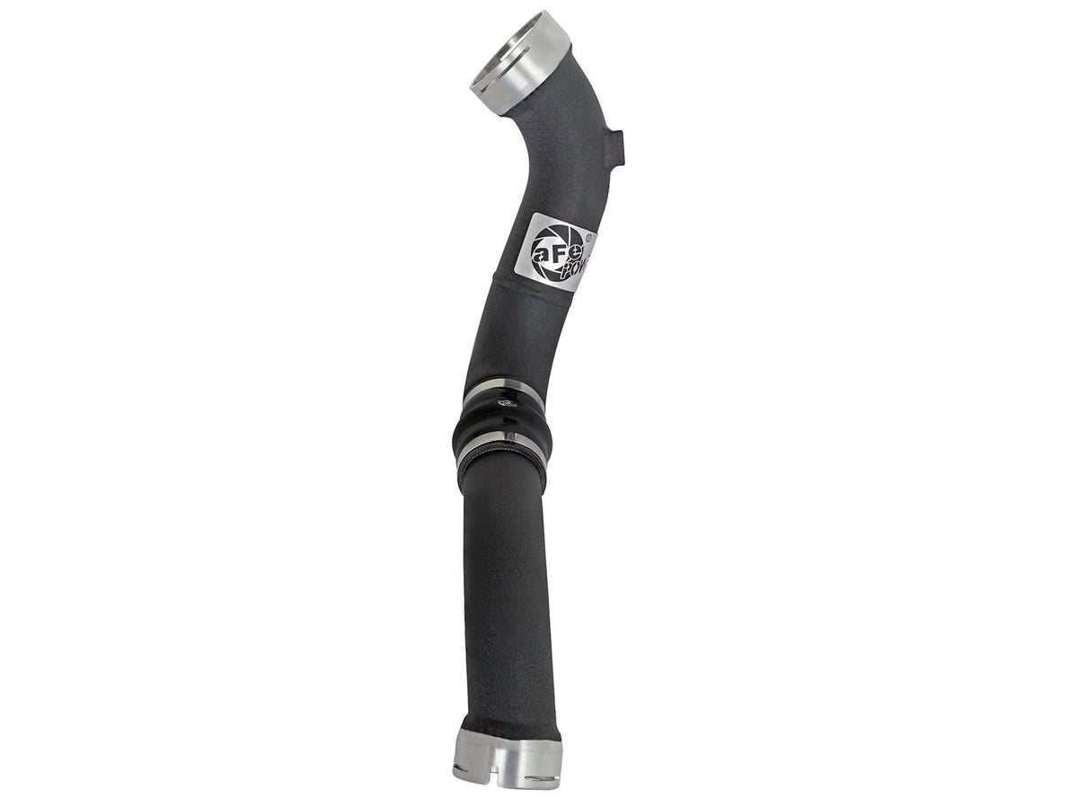 Constructed of 2-1/2" to 3" mandrel-bent aluminum tubing then powder-coated wrinkle-black for heat and corrosion resistance. The smooth transition mandrel bends decrease turbulence which increases horsepower and torque. The high-temp wrinkle-black powder-coating insulates the tubes from engine heat and protects them from corrosion. Two 1/8" NPT ports are provided for sensors or water-methanol injection.