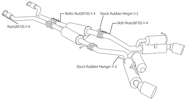 Coupe RWD Only, Rear Active Steer Only, Full Dual Polished SUS304 Stainless Steel Piping w/Dual Titanium Tips (adjustable length), Style: HP(Titan), Material: S3, Tip O.D.: 120, Pipe Size: 60, Consist of: 4