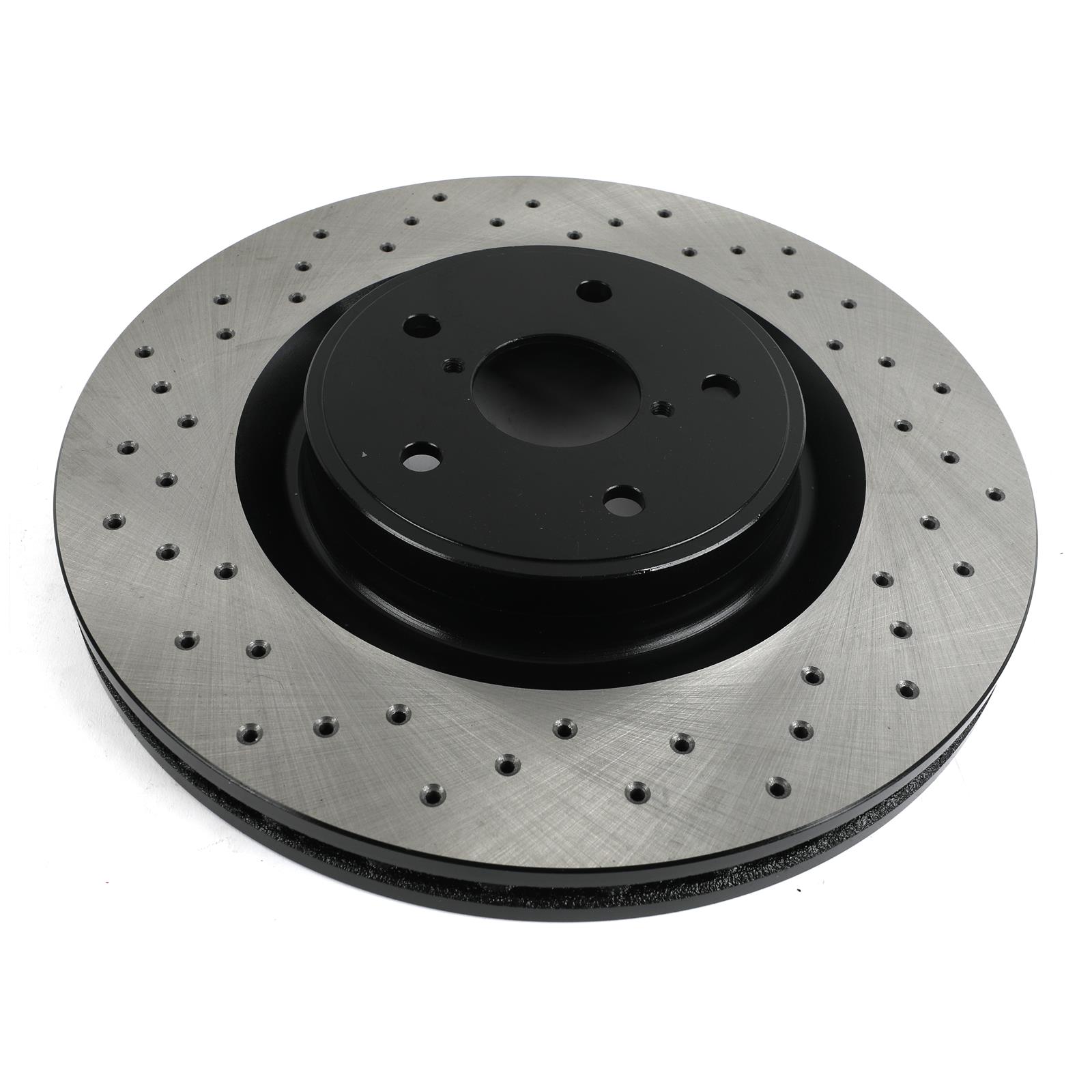 StopTech drilled rotors offer awesome control, responsive pedal feel, and supreme durability, plus a great look behind your open wheels! These quality replacements fit like your stock rotors, but they're cast from a unique power alloy—chromium and iron—and are mill-balanced to resist thermal stress and vibration noise. Then, they're CNC-machined and drilled to improve heat and gas dissipation and maximize your stopping power. Most have a durable black E-coating applied to the non-friction areas of the rotors to prevent unsightly corrosion for a lasting, sporty appeal. Don't put up with poor factory rotors; you'll run cooler with improved braking performance and an enhanced appearance with StopTech drilled brake rotors.