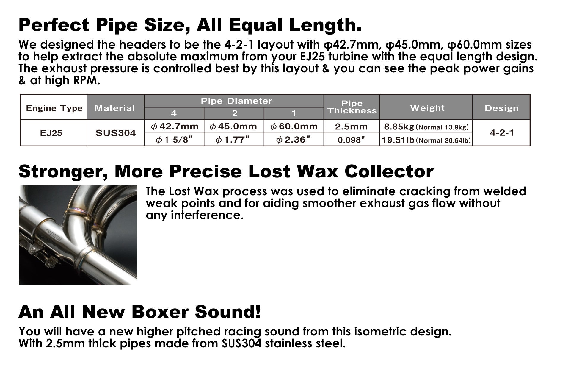 With our ever popular EXPREME exhaust manifolds which is now used throughout the world. Our EXPREME Manifolds have received numerous high appraisals on all aspects of efficiency, durability and performance gains. Now with this new addition to the EJ25 user family we now have a manifold specifically to optimize the EJ25 true power output potential.
