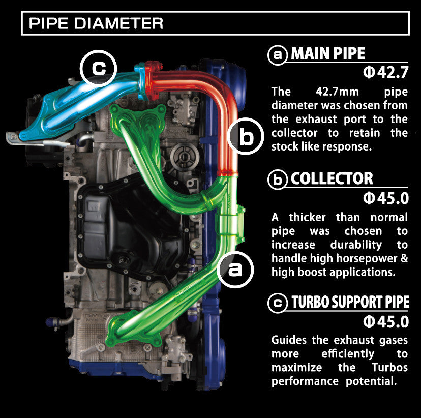 Guides the exhaust gases more efficiently to maximize the Turbos performance potential.